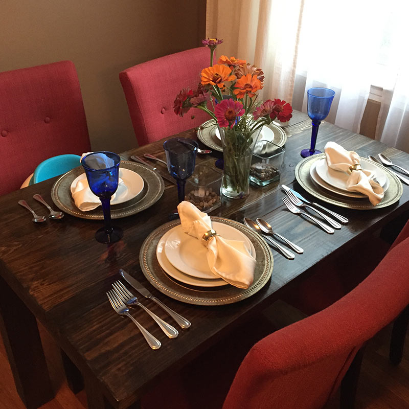 We strive to create beauty and functionality, as well as durability. Most of our pieces are built from solid wood, assembled, sanded, and then painted or stained.